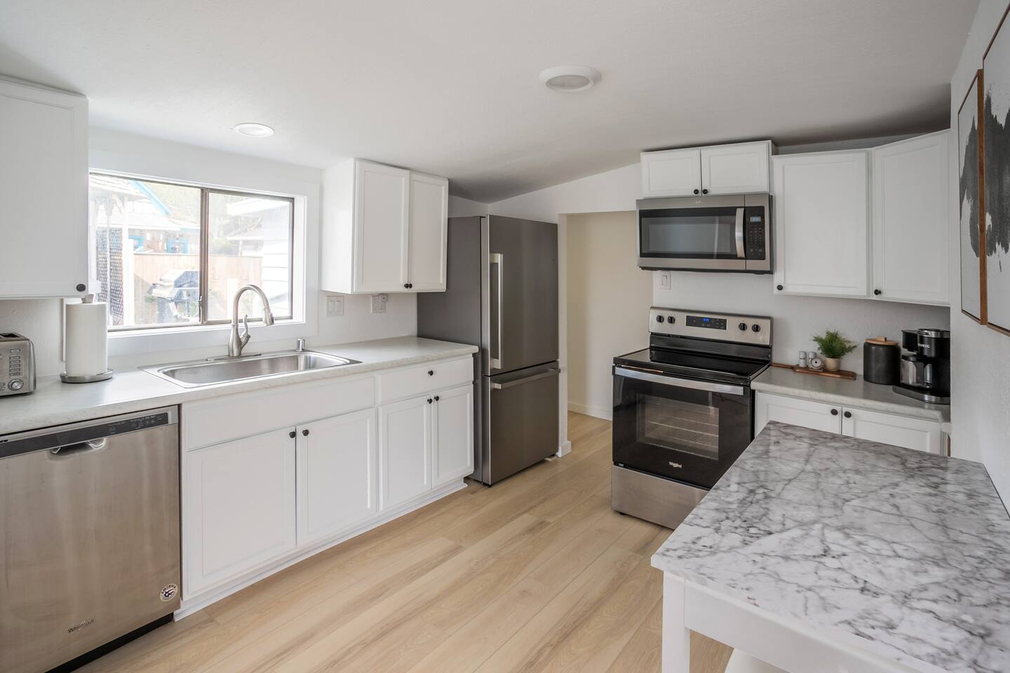 Inside, you'll find a thoughtfully arranged sleeping setup to suit groups of up to six. The primary bedroom features a plush queen-size bed, while the second bedroom offers a cozy full-size bed. In the back room, a pull-out sofa provides additional sleeping space for two smaller guests—ideal for families or close-knit groups. Generous closet space ensures you can unpack and settle in with ease. The bathroom, though compact, is well-stocked with travel essentials like shampoo, conditioner, and body wash—perfect for those who prefer to pack light and keep things simple. Step into your own private backyard retreat, where the bubbling hot tub awaits. Whether you're easing sore muscles after a day of adventure or enjoying a peaceful evening soak under the stars, it’s the ultimate spot to unwind. The tranquil outdoor space adds an extra layer of relaxation to your stay. You're just a short 15-minute walk—or an easy 5-minute drive—from the stunning Pacific coastline. Spend your days strolling the beach, collecting shells, or exploring the natural beauty of nearby state parks. From scenic hikes and water activities to local shops and restaurants in Long Beach, this location offers a little something for everyone. This guest-favorite property is also pet-friendly, featuring a fully fenced yard for added peace of mind. With free WiFi, self check-in via secure smart lock, and all the comforts of home, this cozy historic cabin is your perfect base for a memorable Seaview escape. Book your stay today and let your coastal adventure begin!